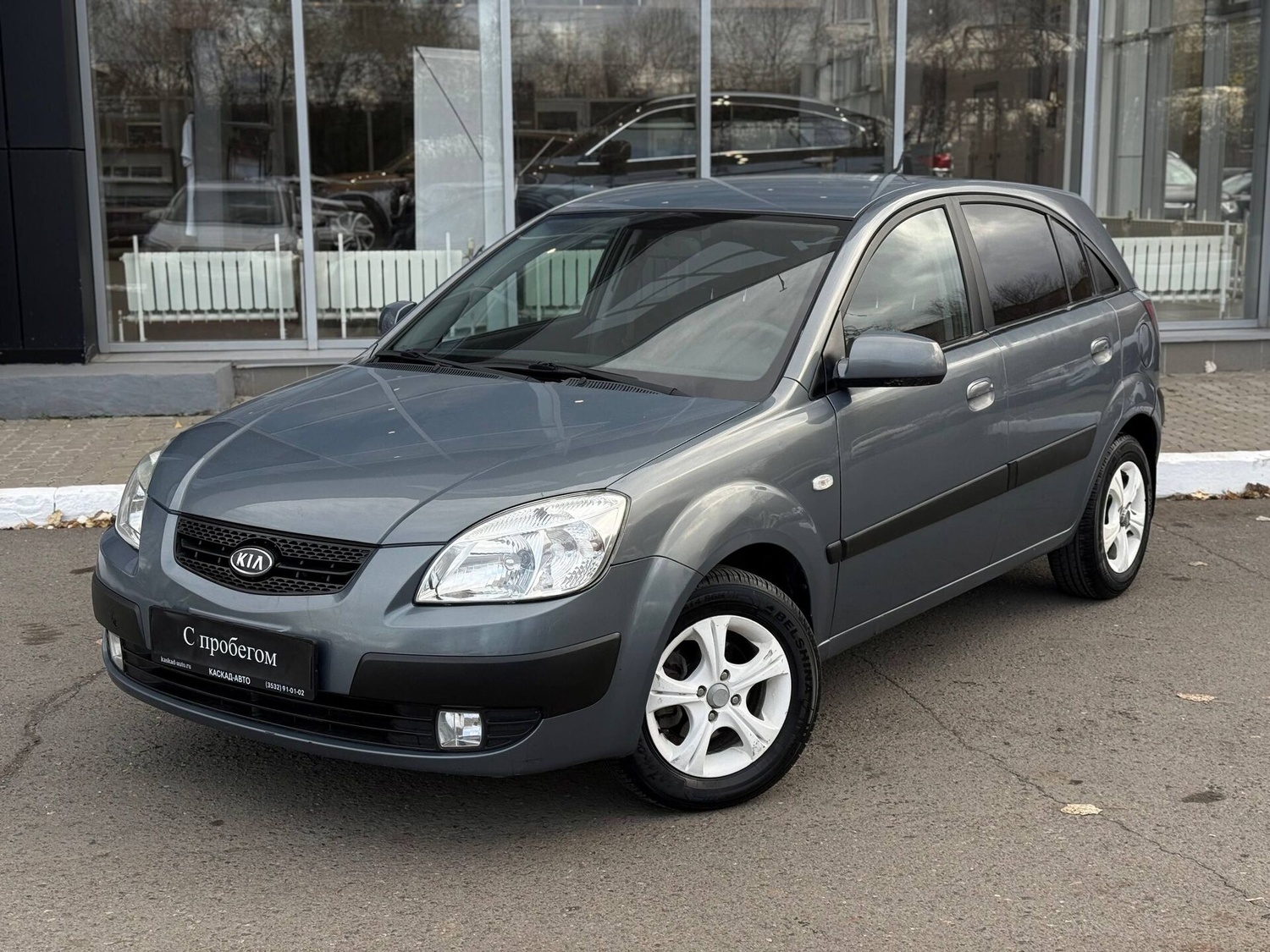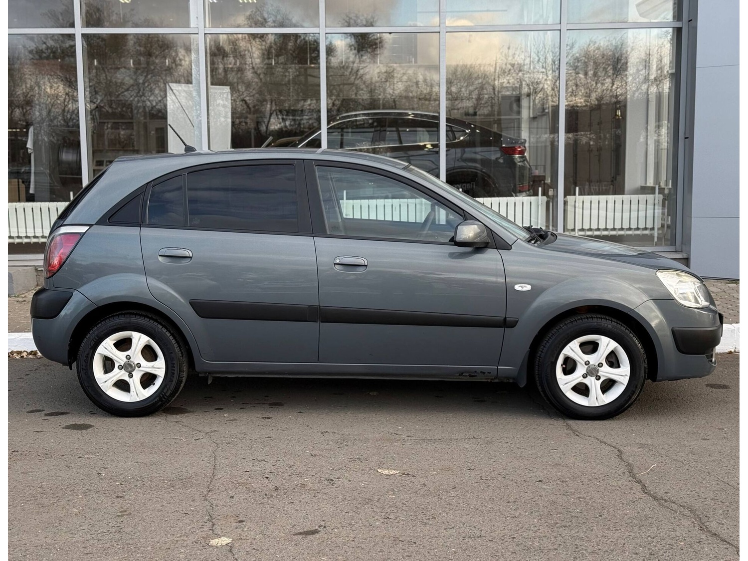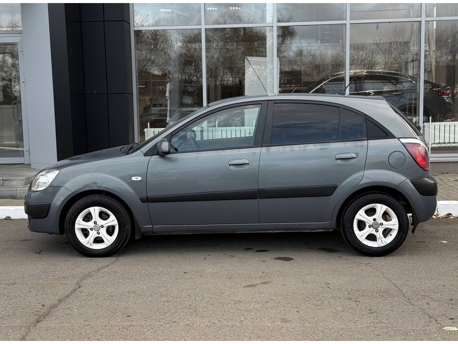 Kia Rio II 2008 года — практичный автомобиль, который подойдёт как для городских поездок, так и для путешествий. Хетчбэк с пятью дверьми и серым кузовом отличается надёжностью и простотой обслуживания.